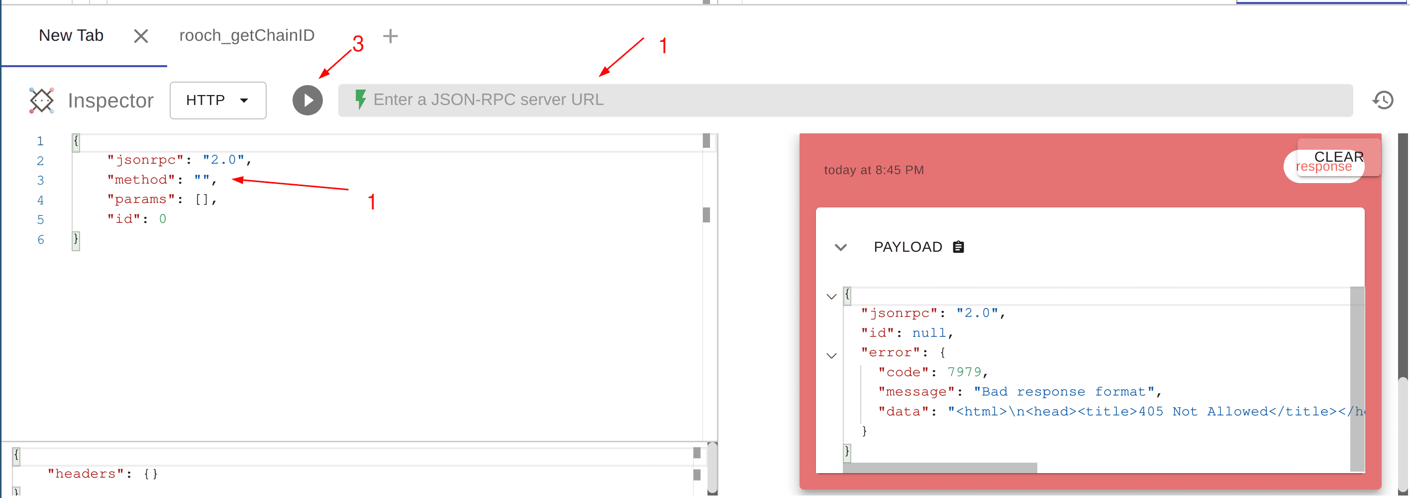 devnode network:https://dev-seed.rooch.network/ - The second step is to fill in the name of the RPC method to be called, for example: