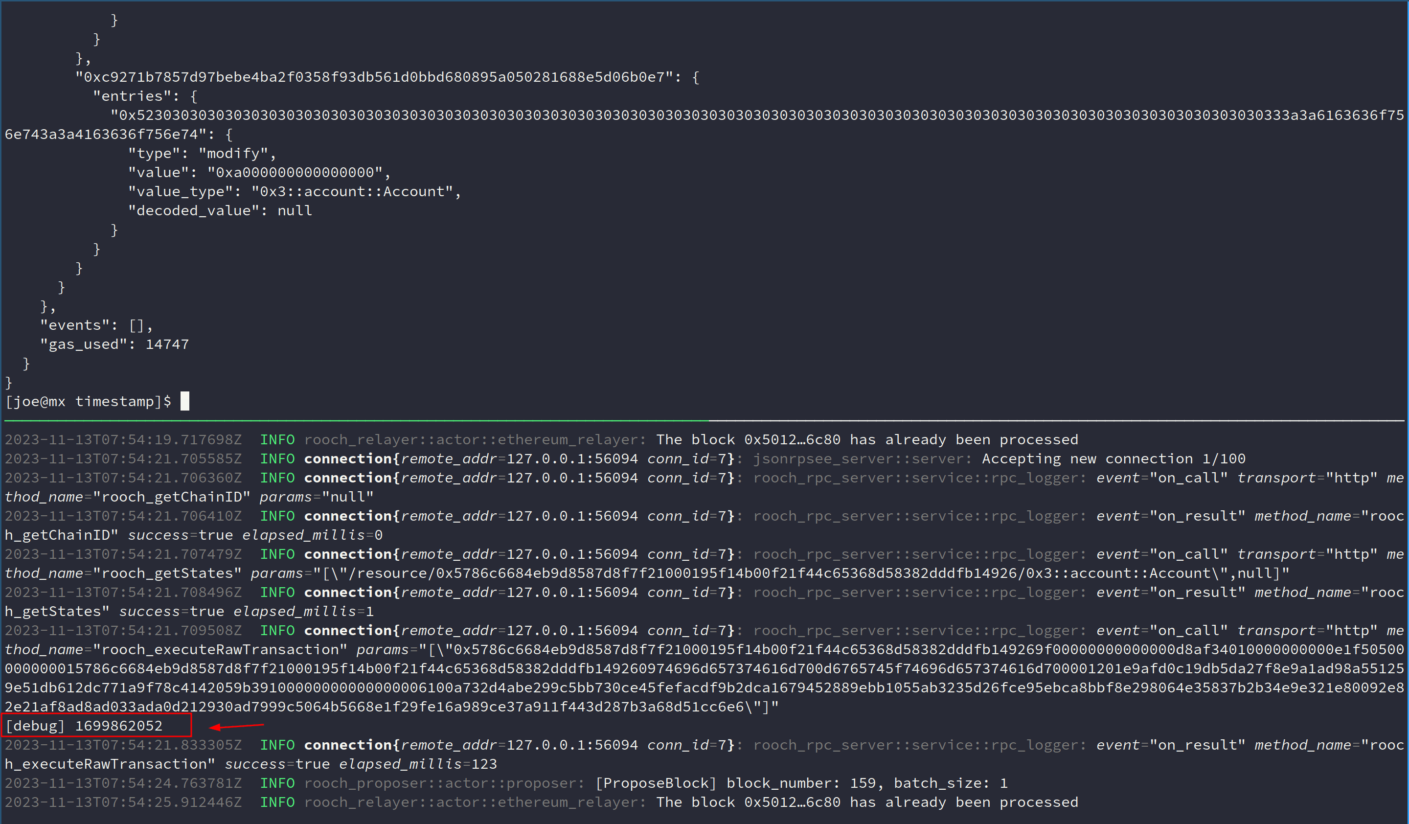 millisecondsline of data. This is the timestamp recorded by Rooch!