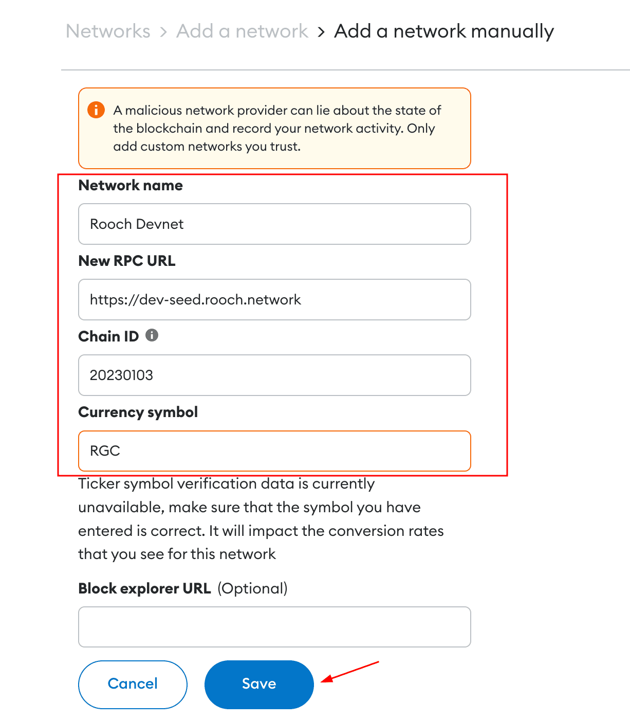 Network name,New RPC URL,Chain ID, andCurrency symbol.