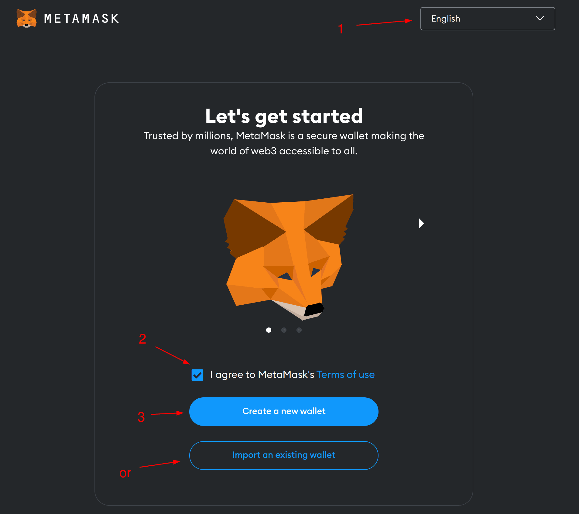 - Or: You already have a MetaMask wallet before, you can choose to import the existing private key to restore the wallet