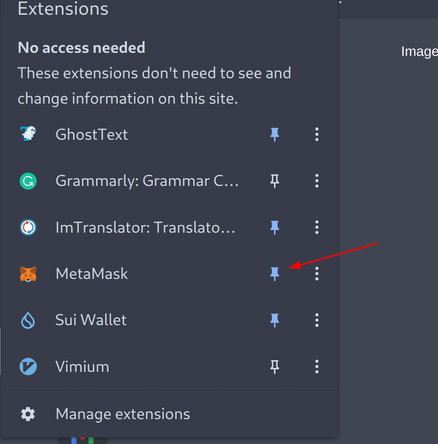 For easier access, we can pin the MetaMask icon to the browser navigation bar.