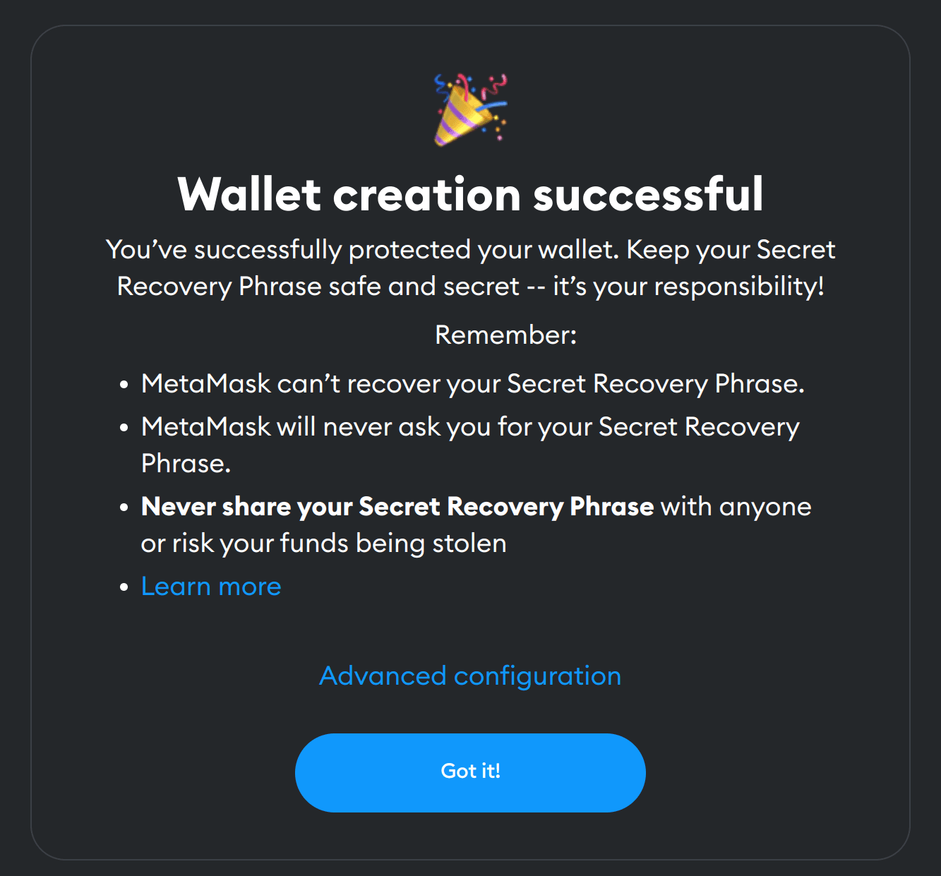 When you see this interface, it means that your Ethereum wallet has been created and you can start your blockchain journey!